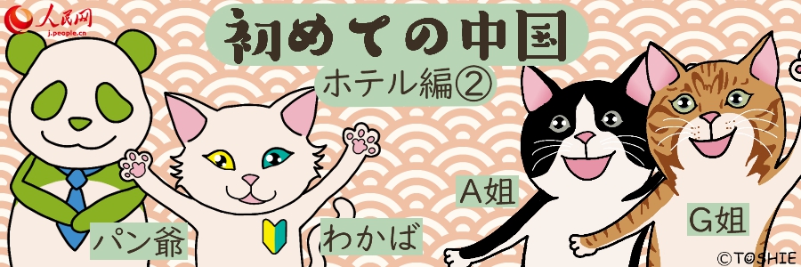 初めて中国に行こうと思っているわかばちゃんには、わからないことがいっぱい。わかばちゃんの「どうしたらいいの?」という質問に、ぶらり北京でおなじみのA姐とG姐が答えます。中国のことならお任せのパン爺も時々ご意見番として動画に登場。中国初心者の質問に答える「初めての中国」。このホテル編では、計4回にわたって、以下のような内容でお送りしていきます。