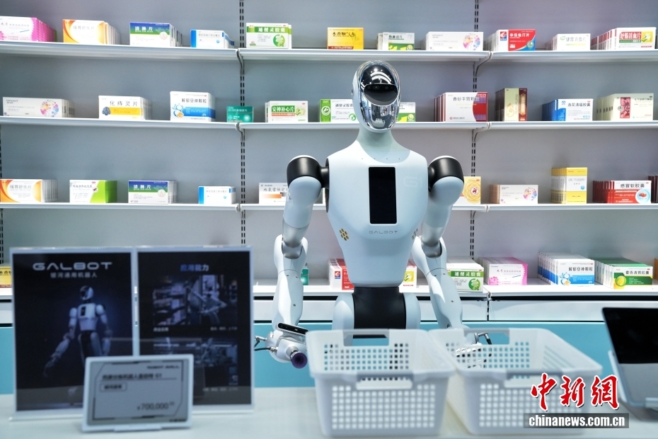 北京市亦荘にある世界初のエンボディドAIロボット4S店「Robot Mall」で、医薬品を仕分けするロボット(8月4日撮影・張祥毅)。