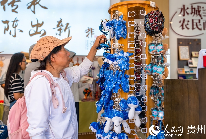 景勝区内で文化クリエイティブグッズを選ぶ女性(撮影・涂敏)。