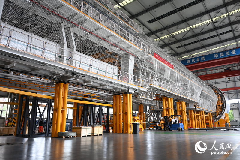 長さ約113メートル、直径15.7メートルの超大型シールドマシン「巴蘭加魯(バランガルー)号」が7月30日、そのカッターフェイスをゆっくりと回転させながら、河南省鄭州市の工場でラインオフした。