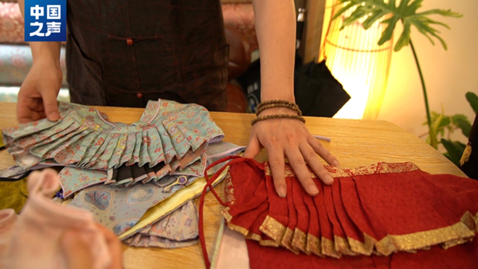 同社の胡鳴一総経理は、「これらの『着せ替え用の服』に使われているのは国家級無形文化遺産に指定されている服の生地で、一人でも多くの若者に伝統文化について理解を深めてもらい、伝統文化をさらに良い形で海外に発信するために、主に、伝統的な服と生地をトレンドと組み合わせている」と説明する。