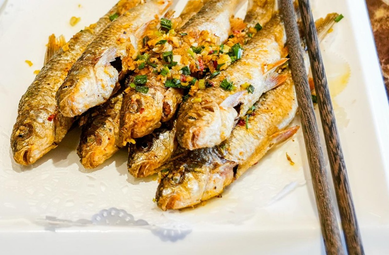 「波乗り魚」は、川魚の「八村石鯪魚」のことで、水のきれいな山間部の渓流に生息していて、遡上する魚だ。揚げ物や蒸し物、煮物のいずれの調理法でも美味しく食べることができる。