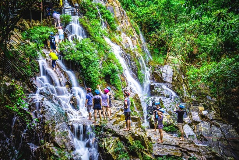 保亭七仙嶺温泉国家森林公園を訪れ、石畳を歩いて熱帯雨林の中に足を踏み入れると、つる性植物がからみついた背の高い大木が影を作っていて、草木の香りが漂い、とてもさわやかな気分になる。