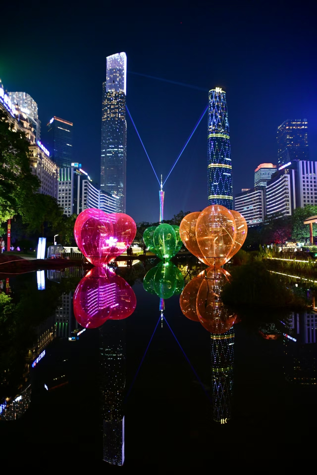 2025年広州国際ライトフェスティバルが今月16日夜、開幕した。今回のメイン会場は、広州の新中軸線上にある花城広場と海心沙亜運(アジア競技大会)公園に設置されており、ライトアート作品36セットが飾られている。サブ会場は広州市内を流れる珠江の両岸と黄埔区まで拡大されている。ライトフェスティバルは、第32回広州園林博覧会、第15回全国運動会(全運会)とも連動しており、広州では今、夜のライトアート鑑賞の他にも、日中は花々を観賞でき、さらに1日中スポーツの試合を観戦できる。同フェスティバルは26日まで開催される。