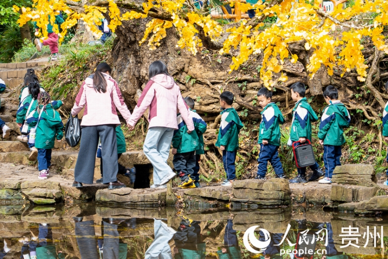 貴州省六盤水市管轄下の盤州市妥楽村では、初冬を迎え、イチョウが黄金色に染まっている。村では今、学校の教師や児童らが遠足に訪れ、イチョウの落ち葉を拾い、イチョウを使った作品を作る姿が見られる。こうした体験は「自然の贈物」であるだけでなく、大自然を「教室」とした「授業」の一環でもある。妥楽村では、児童らが自然の中で楽しく学ぶ光景が初冬の風物詩となっている。人民網が伝えた。