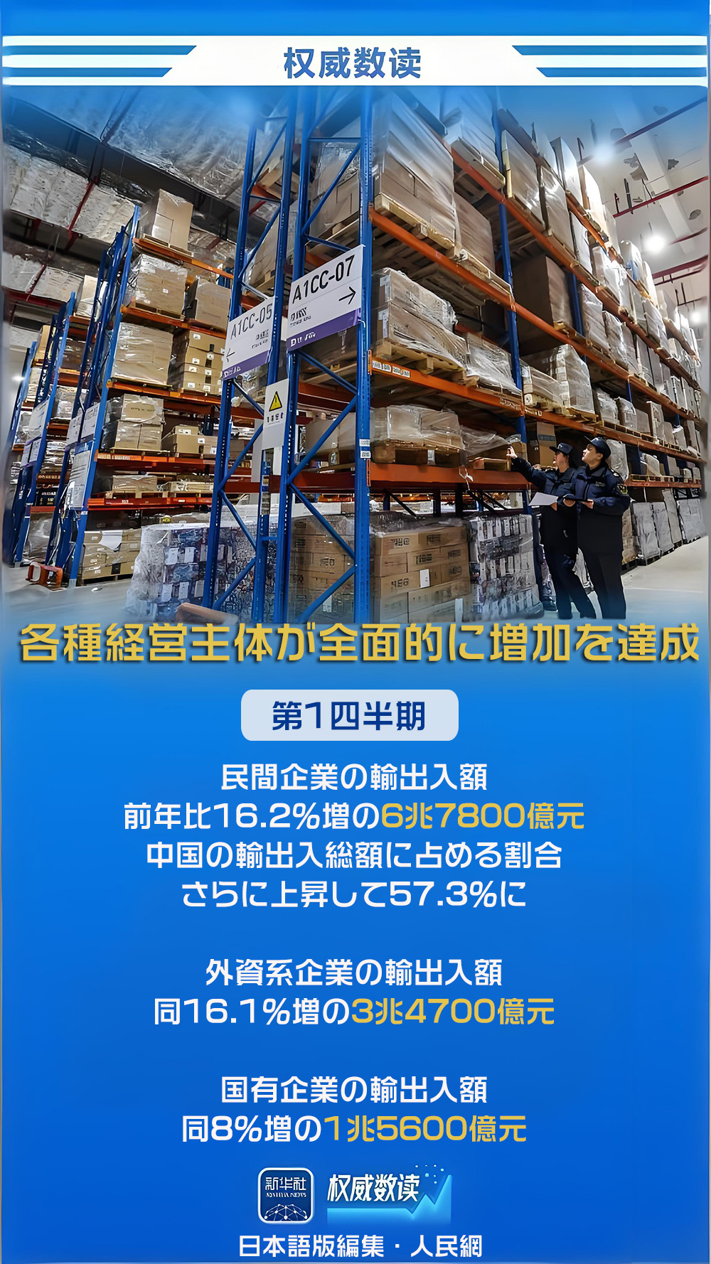 王副署長は、「第1四半期に中国の輸出が2桁成長となった主な原因は、外部に需要があり、中国が優れた品質と適正な価格、そして安定かつ確実な供給で応えたことにある」と述べた。